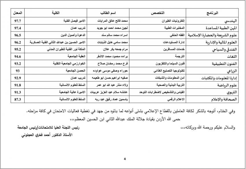 وتاليا اسماء الطلبة الأوائل في امتحان الشامل: