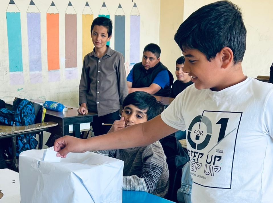 ويختار طلاب الصف ثلاثة من الطلاب غير المرشحين ليقوموا بعملية الفرز: اثنان منهم لقراءة ورقة الاقتراع، والثالث لرصد الأصوات على اللوحة، فيما تلغى ورقة الانتخاب التي تخالف شروط وقواعد الانتخاب، في حين يتم فرز الأصوات على اللوحة الرسمية بحضور طلبة الصف المعني بعد انتهاء الانتخاب مباشرة.