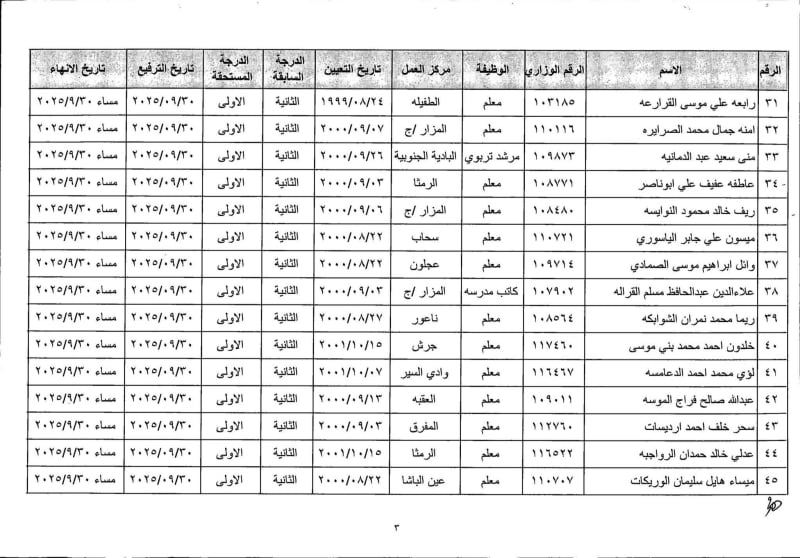 وشمل القرار ترفيعهم وجوبياً إلى الدرجة التي تلي درجتهم الحالية قبل إنهاء خدماتهم.