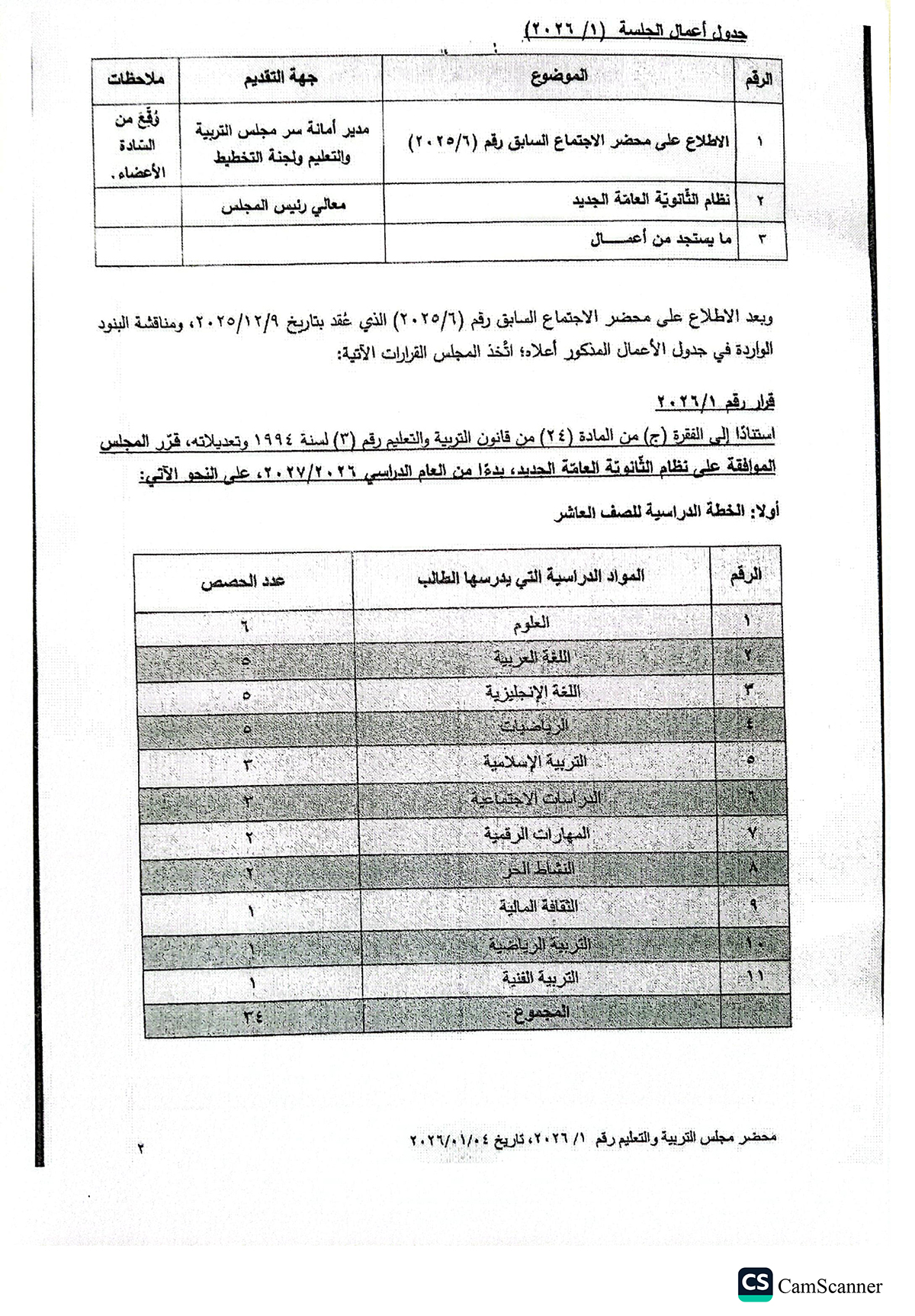 جو أكاديمي - أقرّ مجلس التربية والتعليم تعديلات على الخطة الدراسية لمرحلة الثانوية العامة، يبدأ تطبيقها اعتبارًا من العام الدراسي 2026/2027، وذلك في إطار جهود وزارة التربية والتعليم المستمرة لتجويد العملية التعليمية وتحسين مخرجاتها، وبناء على التغذية الراجعة الواردة من الميدان التربوي، وآراء المختصين والخبراء.